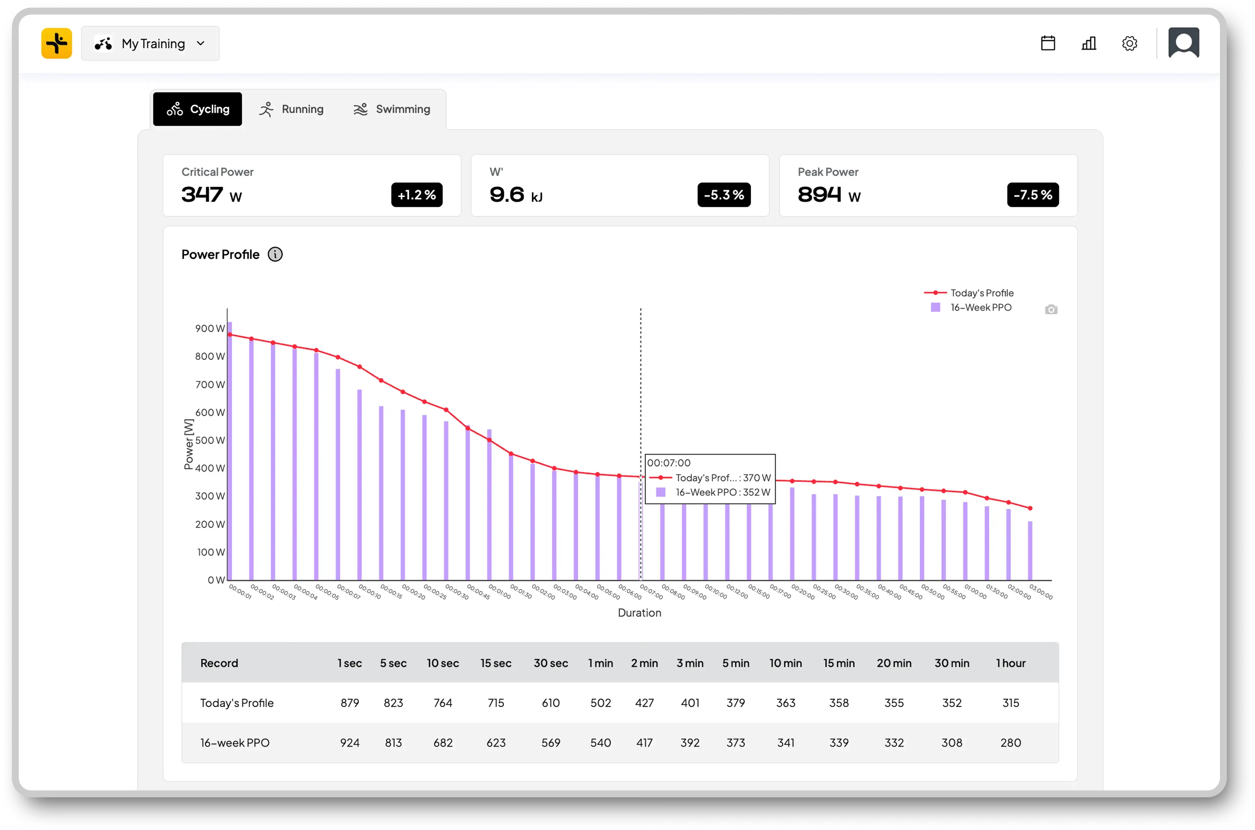Automatic Critical Power and W′ detection: always current, no testing needed.